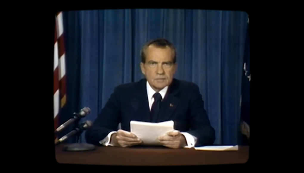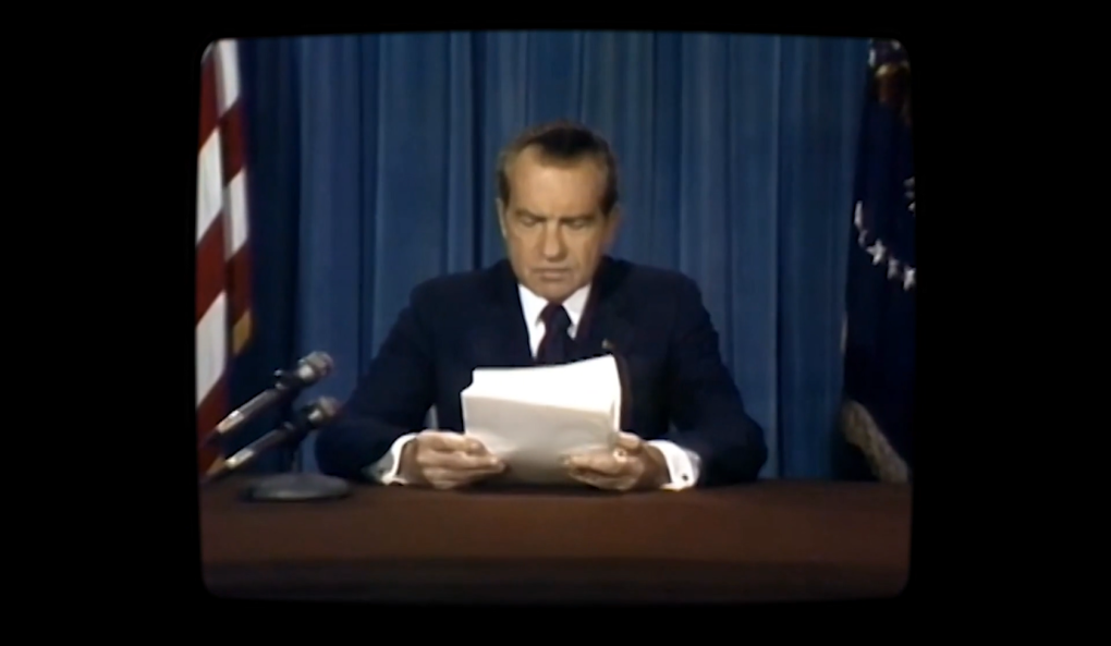 Framegrab, der med deepfake-teknologi viser, hvordan det kunne have set ud, hvis præsident Nixon havde holdt sin katastrofetale (Francesca Panetta og Halsey Burgurd / MIT Center for Advanced Virtuality)
