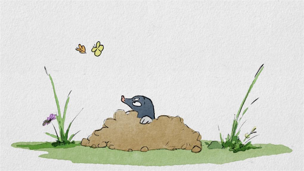 Muldvarpen føler sig ensom, mens de andre dyr nyder foråret sammen. I gangene nede under jorden prøver den at fange noget, der ligner en regnorm. Efter en lang jagt opdager muldvarpen, at den drilagtige regnorm er noget helt andet, som man kan blive endnu mere glad for.