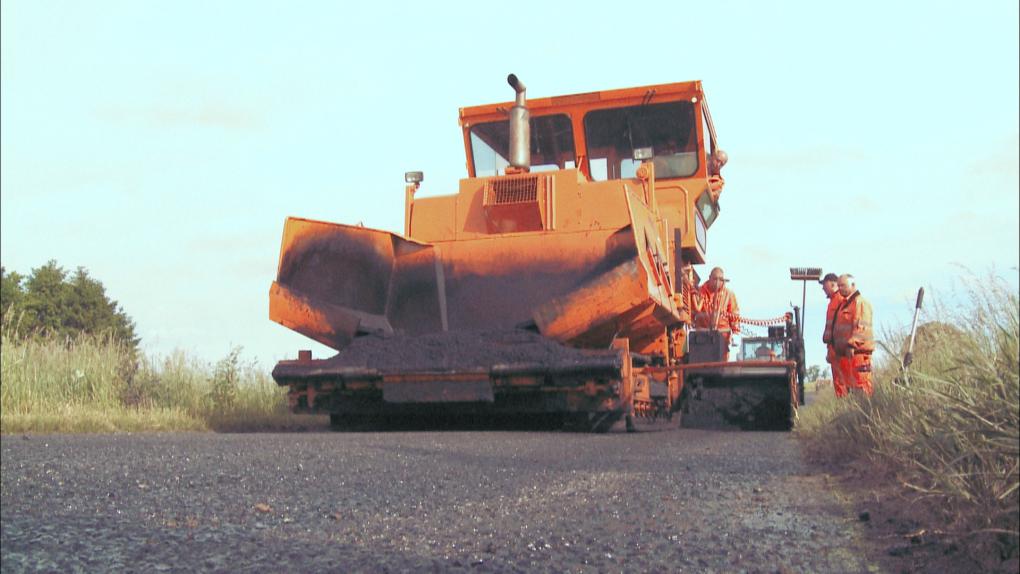 Gravemaskinen – eller gravkoen – har ikke hjul, men larvefødder. Foran har den en stor skovl, som den graver jord op med. Gravemaskinen arbejder sammen med sin makker, dumperen, som kan køre jorden væk.