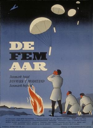 Men det var ikke disse film, der skulle blive de helt store leverandører af scener til efterkrigstidens kollektive hukommelse. Det var derimod to film fra henholdsvis Dansk Film Co. og Minerva Film, som havde været primusmotorer i besættelsestidens illegale filmarbejde, 'Danmark i Lænker' (1945) og 'Det gælder din Frihed' (1946). Klip fra disse to film, som begge fik landsdækkende biografdistribution, dannede grundstammen i filmen 'De Fem Aar', der blev produceret i 1955, da krigen var kommet lidt på afstand, og den kontrovers, særligt 'Det gælder din Frihed' fremprovokerede, havde lagt sig. I 1960 blev 'De Fem Aar' klippet ned med cirka en halv time i en version til brug i danske skoler. Og det er denne film, der nok mest bastant har formet generationer af danske skoleelevers indre galleri af levende billeder fra besættelsen. Filmen var i årtier en af de mest udlejede skolefilm fra Statens Filmcentral. Den var også i sit indhold og i sin historiefortolkning milevidt fra de første to film, som den var delvist baseret på. 'De Fem Aar' er derfor ikke bare en skolefilm, men også et skoleeksempel på, hvordan historiefortælling formes i takt med tidens samfundsmæssige og politiske toneklang.