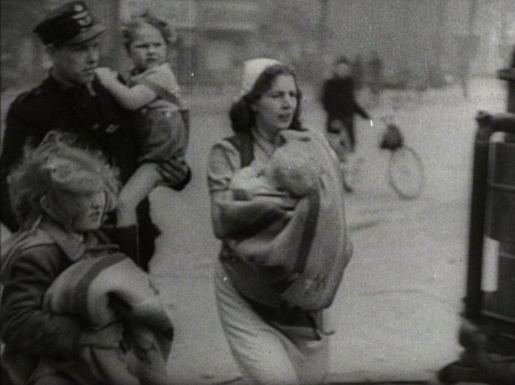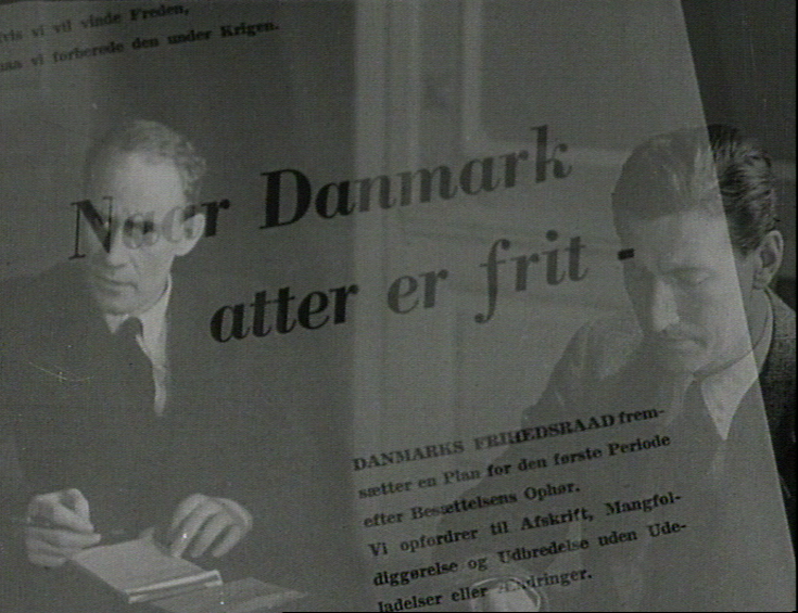 af andre Optagelser, som virker ved autentisk Styrke, skal vi nævne en Afvæbning af to tyske Soldater på aaben Gade i København. Nogle faa Frihedskæmpere ledsaget af en Filmfotograf holder to tyske Soldater og en Kvinde op og fratager Soldaterne deres Vaaben. Episoden virker så meget mere fantastisk, fordi Folk på Gaden ikke engang standser op, men roligt og uanfægtet gaar videre.[1]